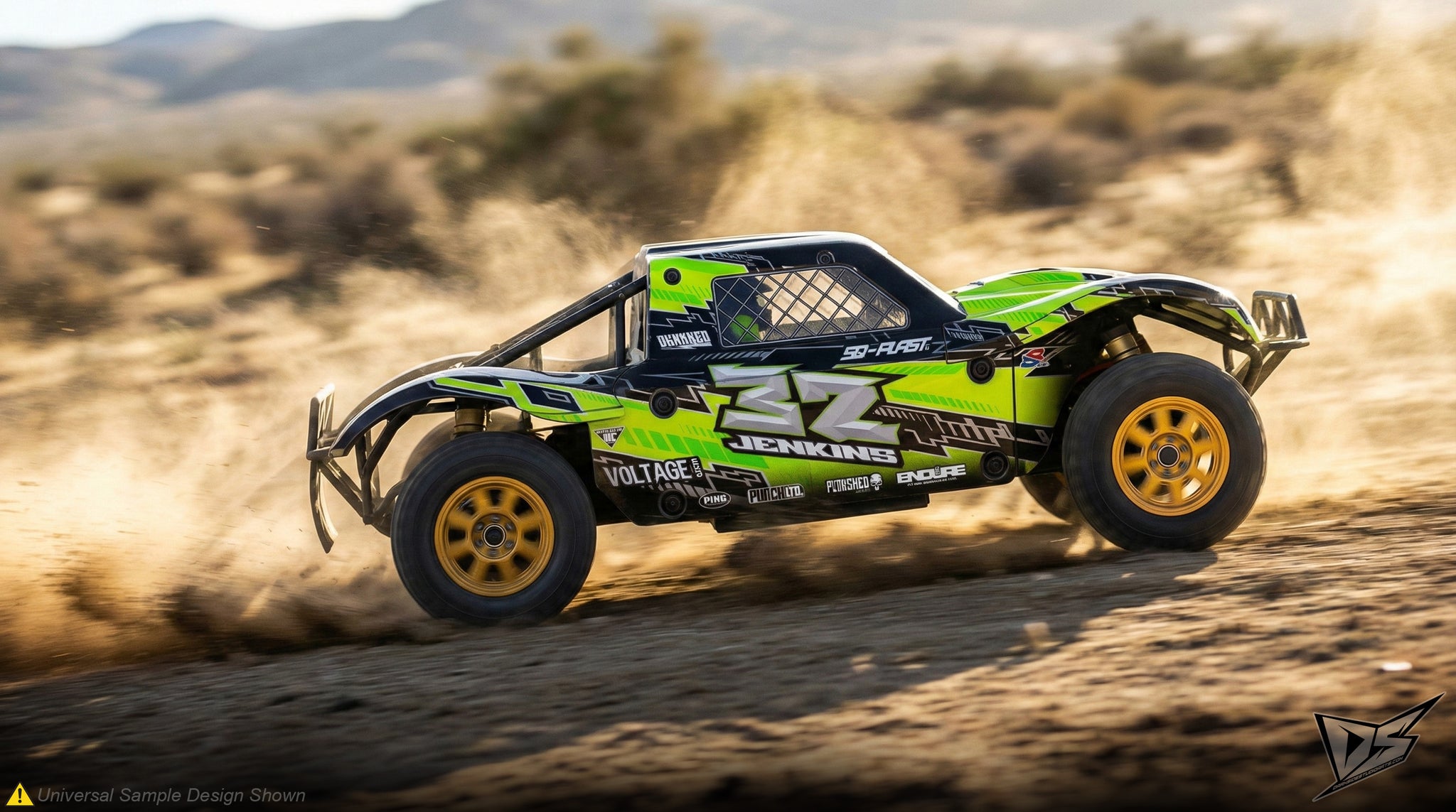 This aftermarket hop-up graphics skin product is specially engineered for use on RC vehicle bodies, which are precision cut for specific easy body fitment applications.