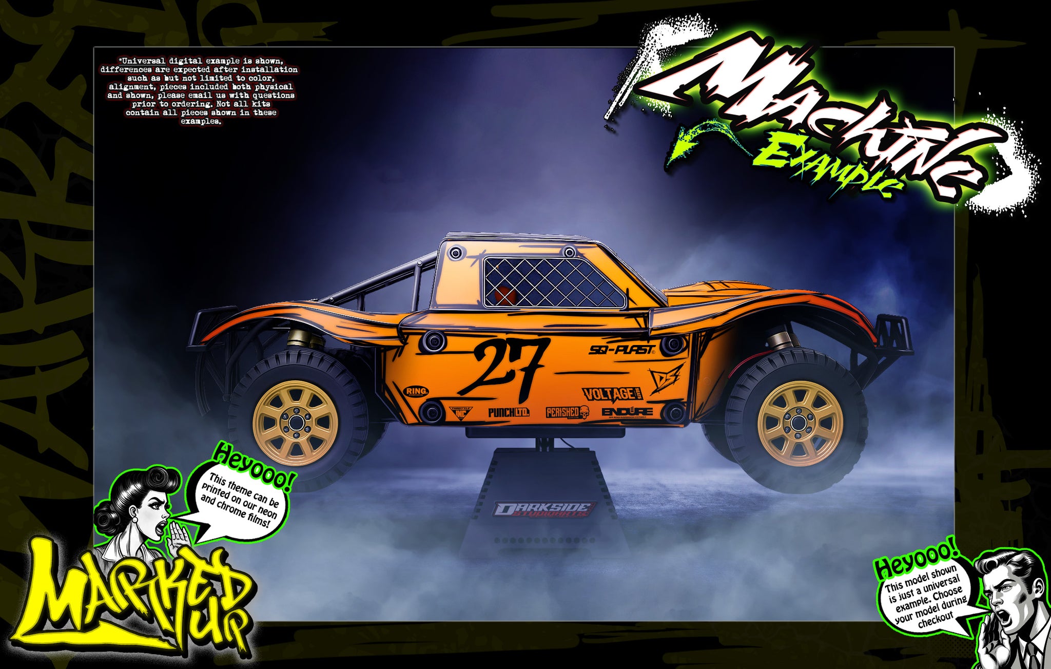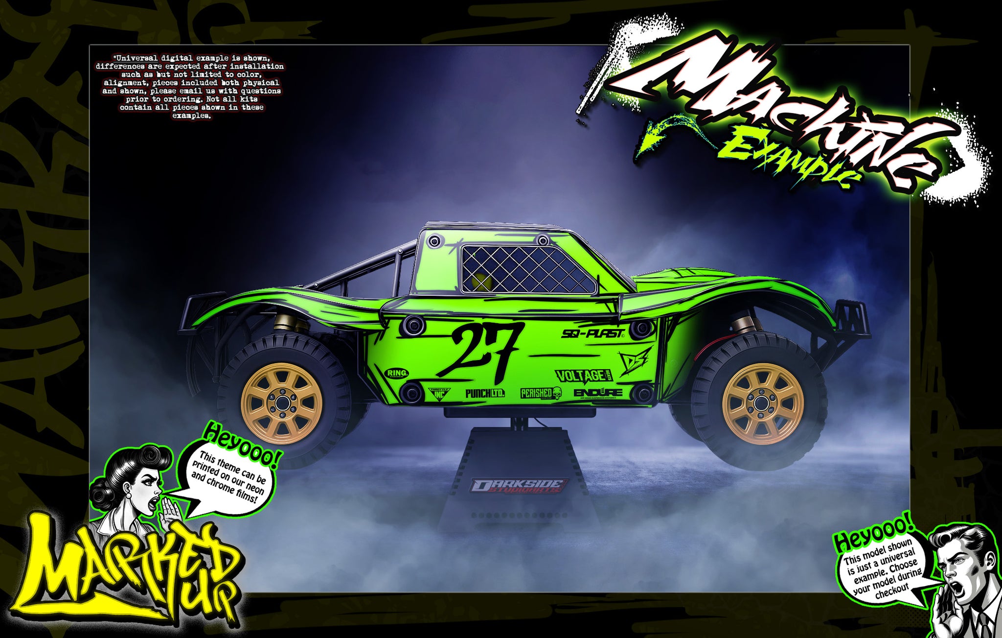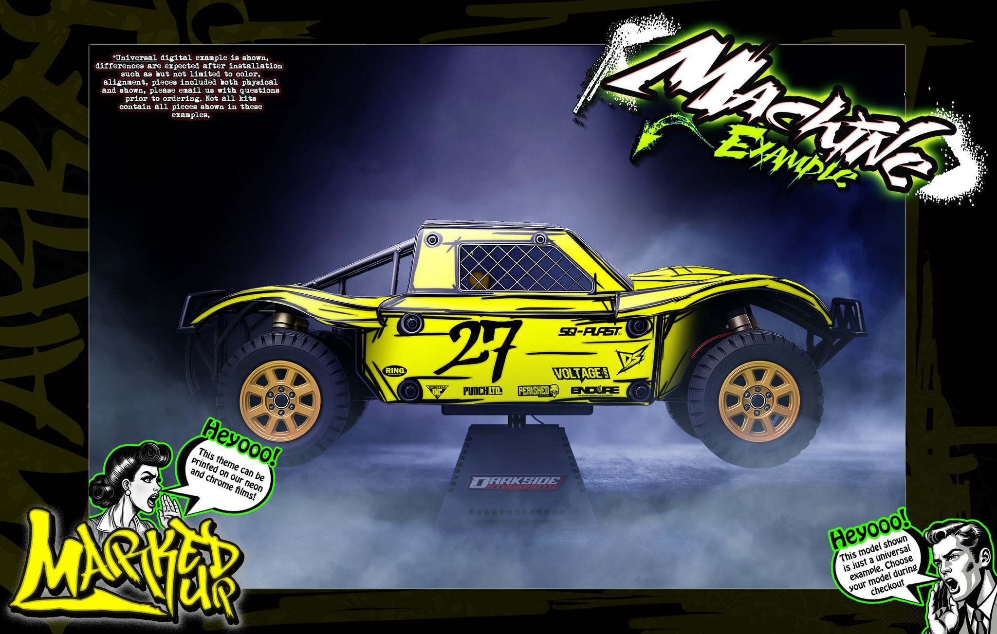 'Marked Up' -True Neon- Themed Graphics Kit Fits 30° North Big Flex Body | Losi® 5IVE-T | King Motor | Rovan