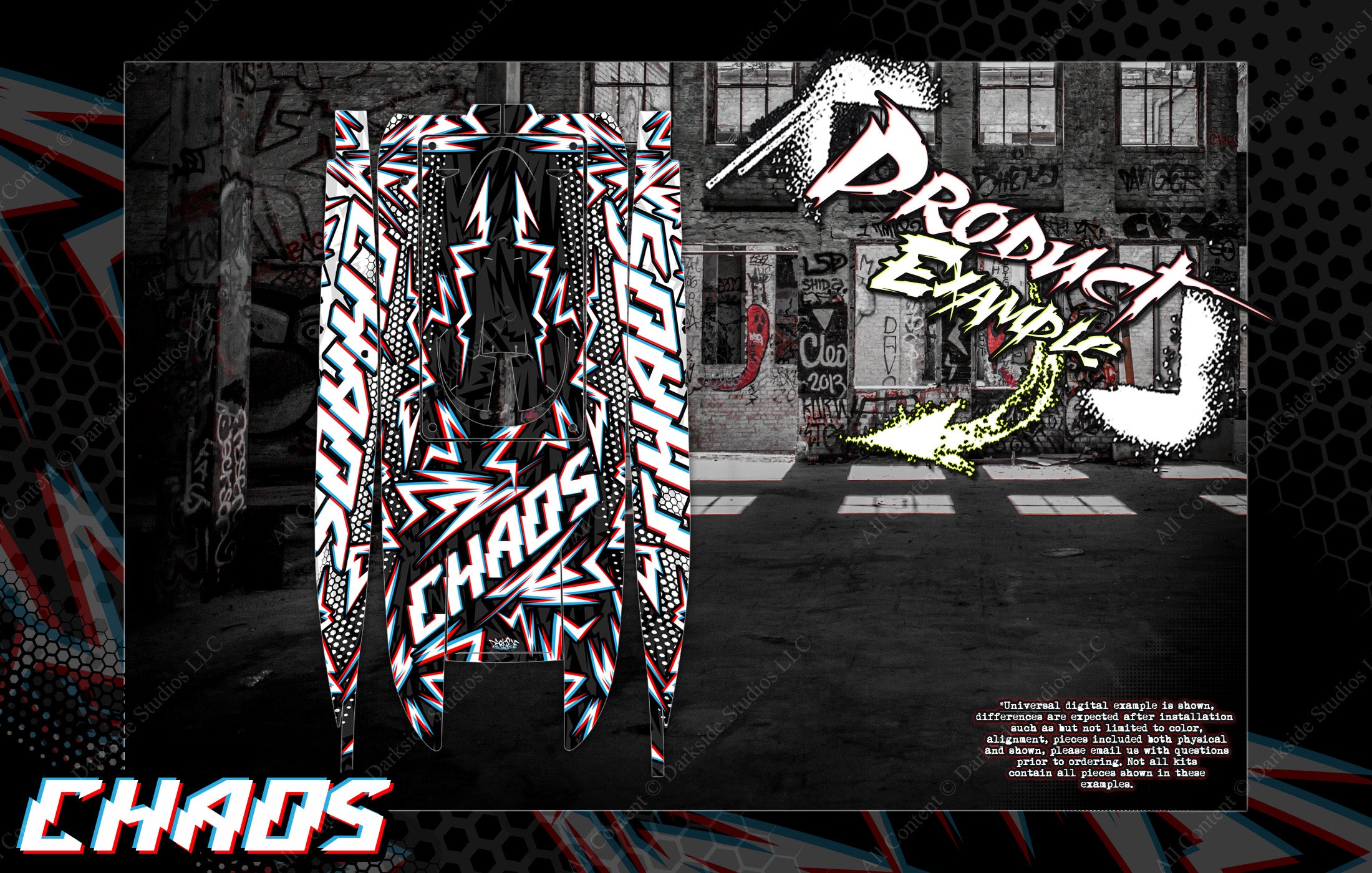 Boat Hull Wrap Decal Graphics Kit 'Chaos' Fits Pro-Boat Blackjack 24" Or Blackjack 42"