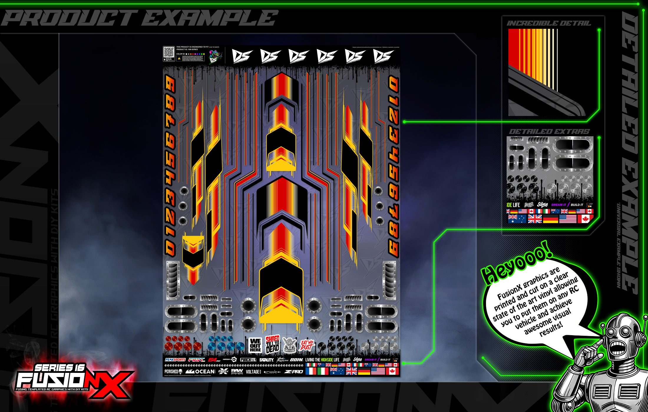 'Series 16B' FusionX Universal Aftermarket Graphics Kit Suitable For ProBoat, Oxidean Marine, Traxxas, TFL, Kyosho & Other RC Boats
