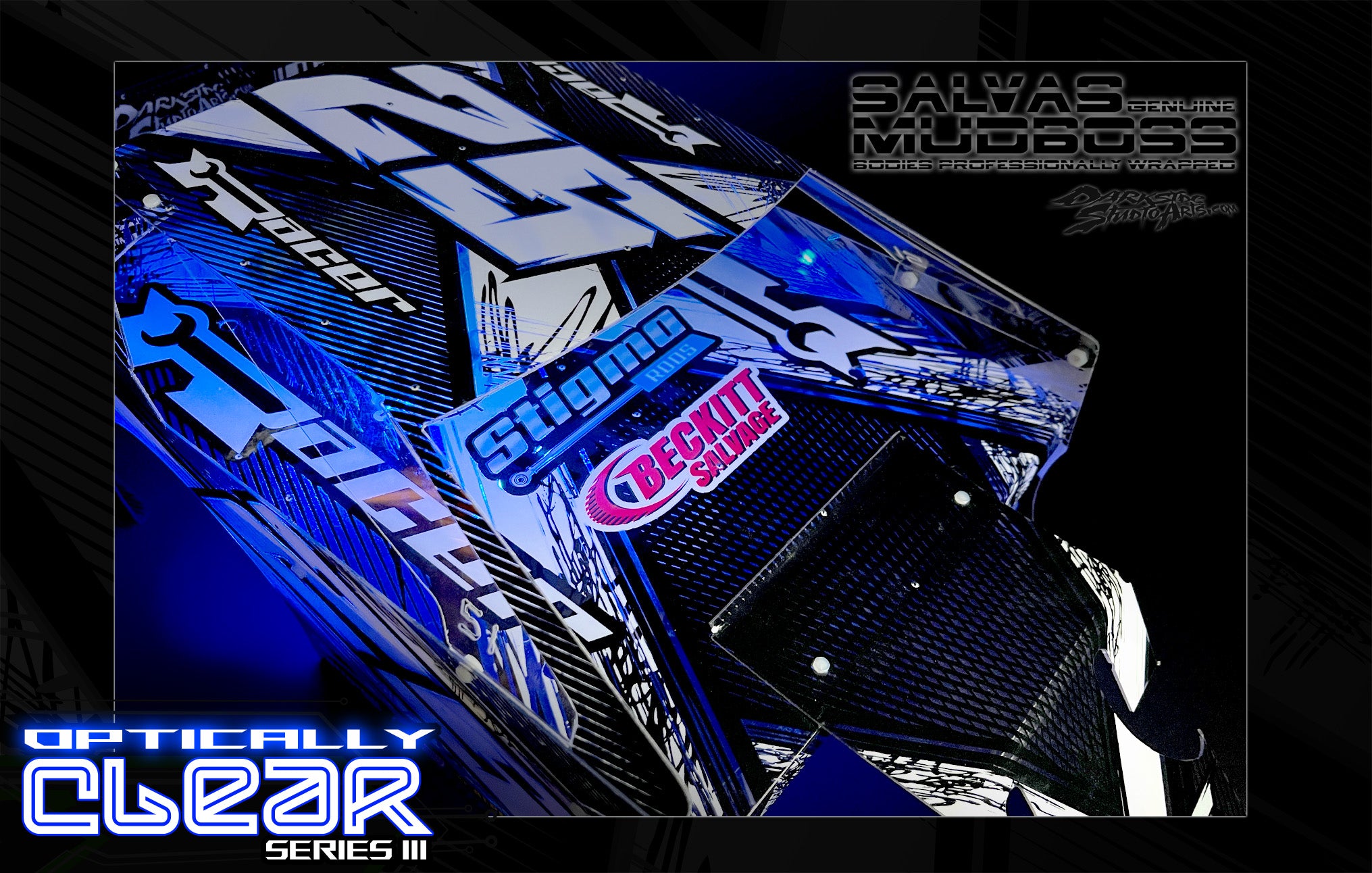 'Clear Series III' Pre-Wrapped & Assembled Genuine Salvas Mudboss Lexan Body for Short Course Traxxas Slash Racing