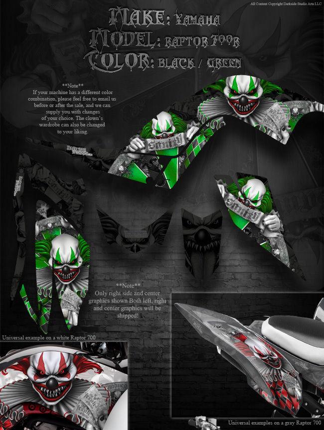 Graphics Kit For Yamaha 06-12 Raptor 700 "The Freak Show" Green Accents 4 Black Plastics