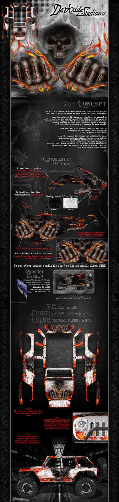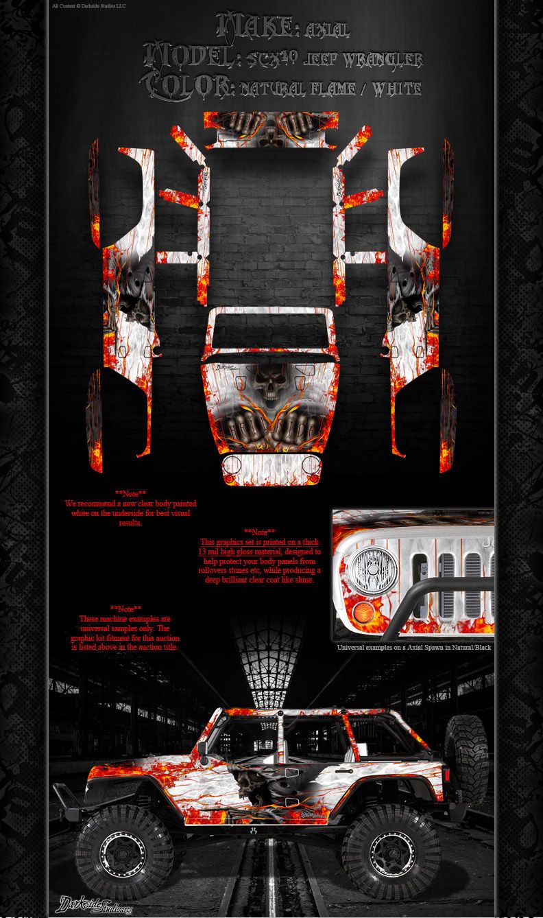'Hell Ride' Aufkleber Skin Hop Up Kit passend für Axial Scx10 Jeep Wrangler Karosserie # Ax04035