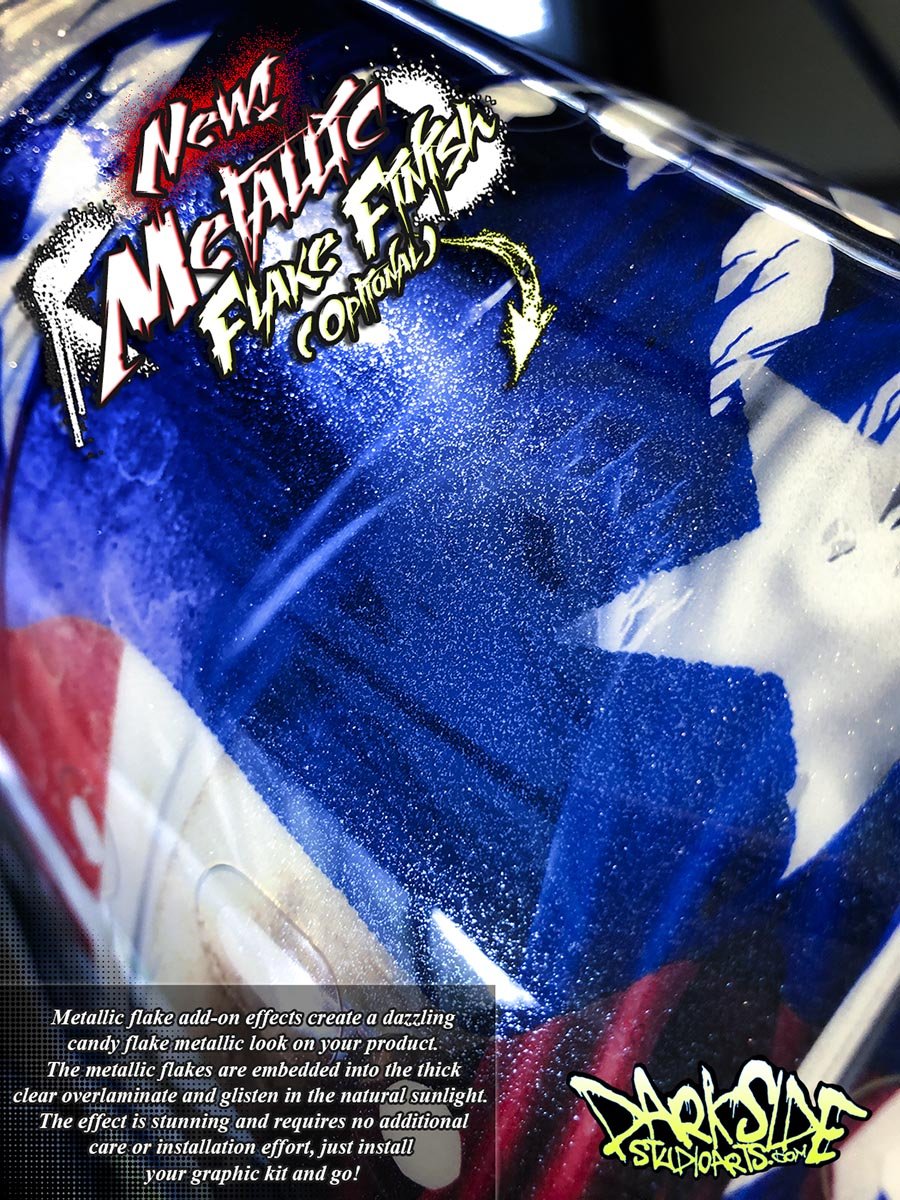 Zahlreiche Zusatzoptionen zur individuellen Gestaltung verfügbar, wie z. B. Oil Spill, Metallic Flake, Honey Chrome, Confetti, Xtreme Bash Finish und mehr! Klicken Sie HIER für Beispiele.