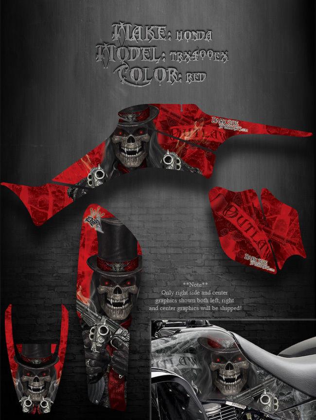 Grafiken für Honda 1999-2004 Trx400 Trx400Ex Aufkleber "The Outlaw" Totenköpfe Rot 03