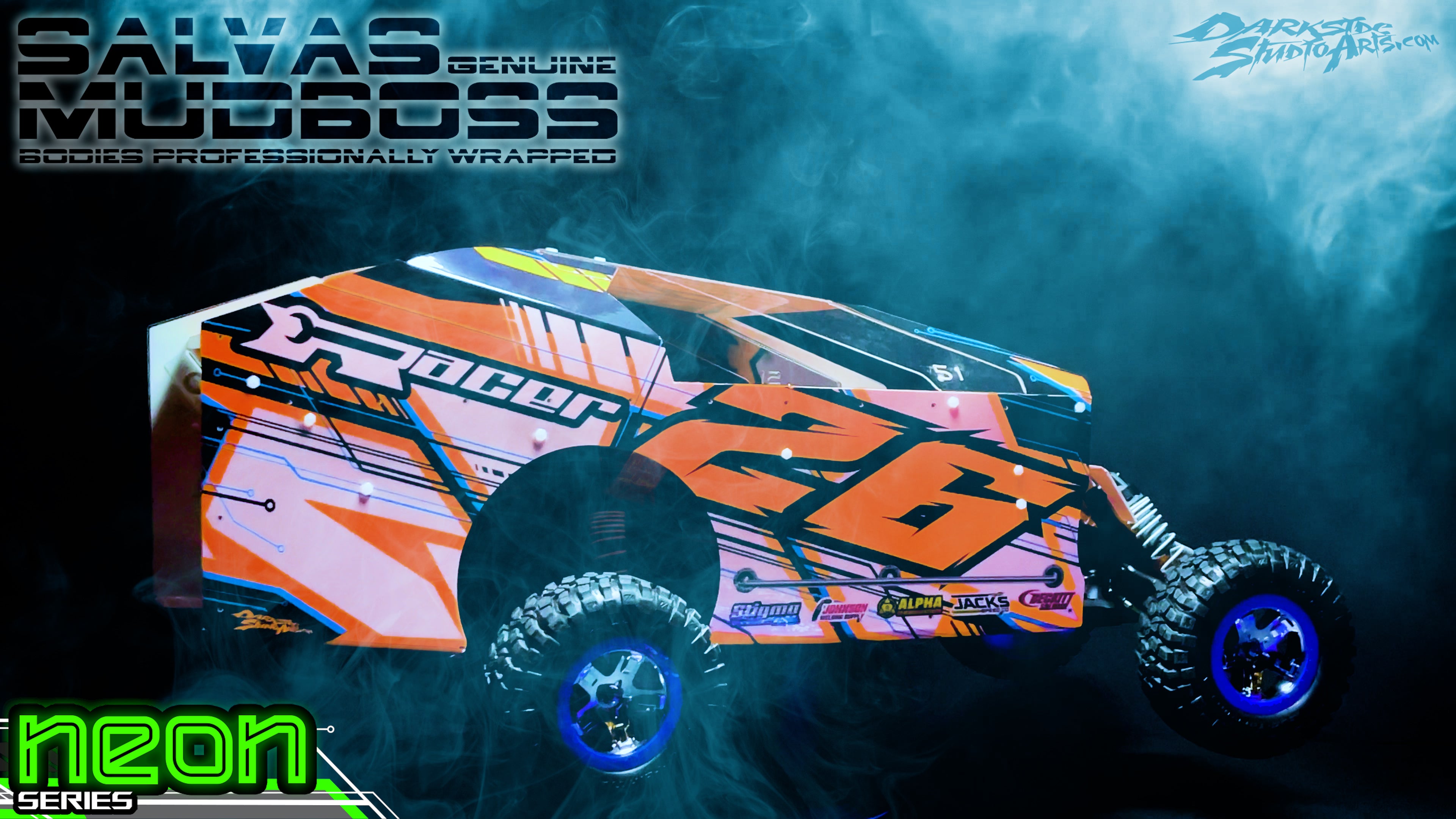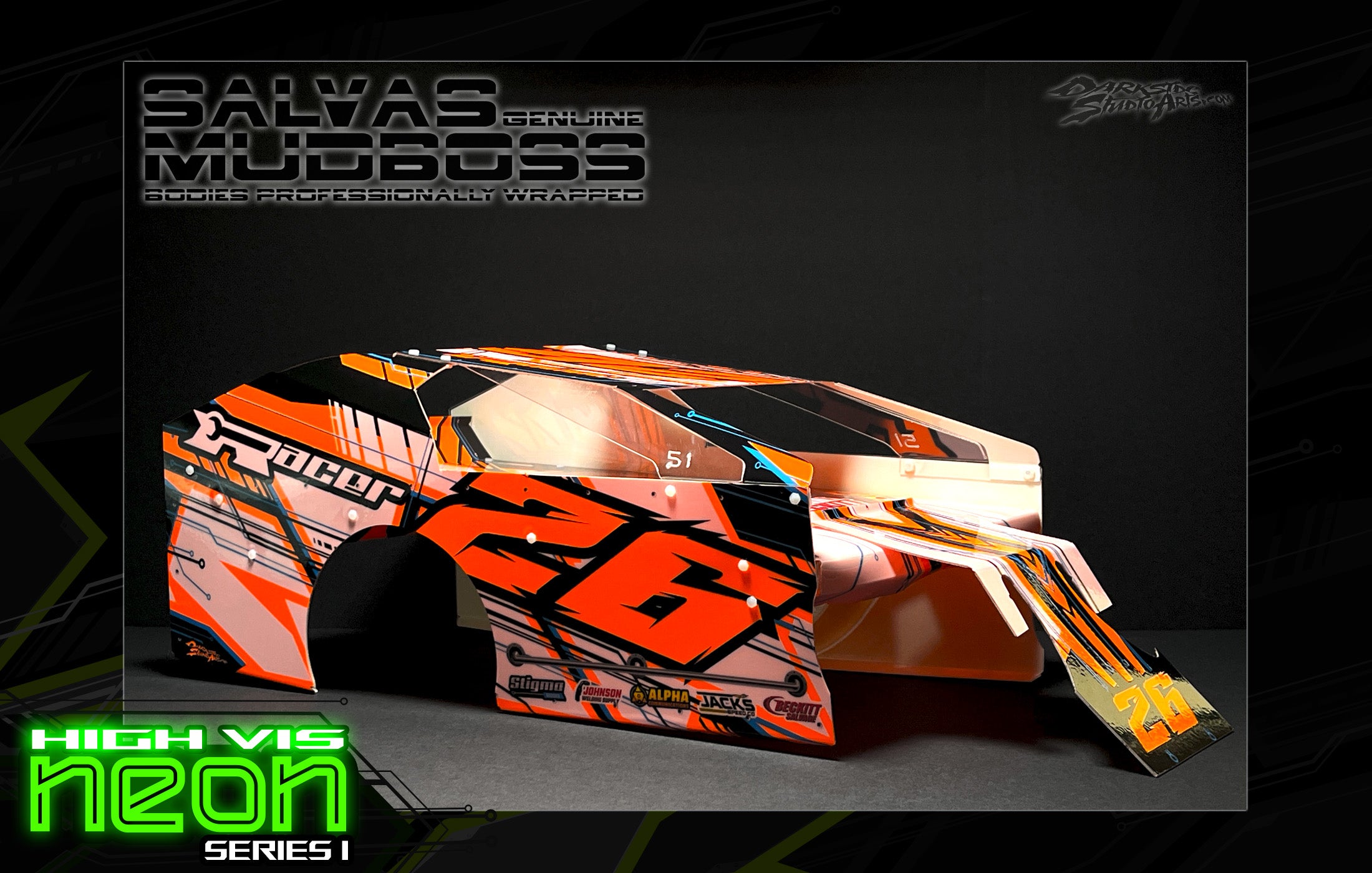 • Product being sold: Genuine -Assembled- new Salvas Mudboss Body and Hardware with installed Darkside Studios' graphics kit, nearly ready to bolt on and race.