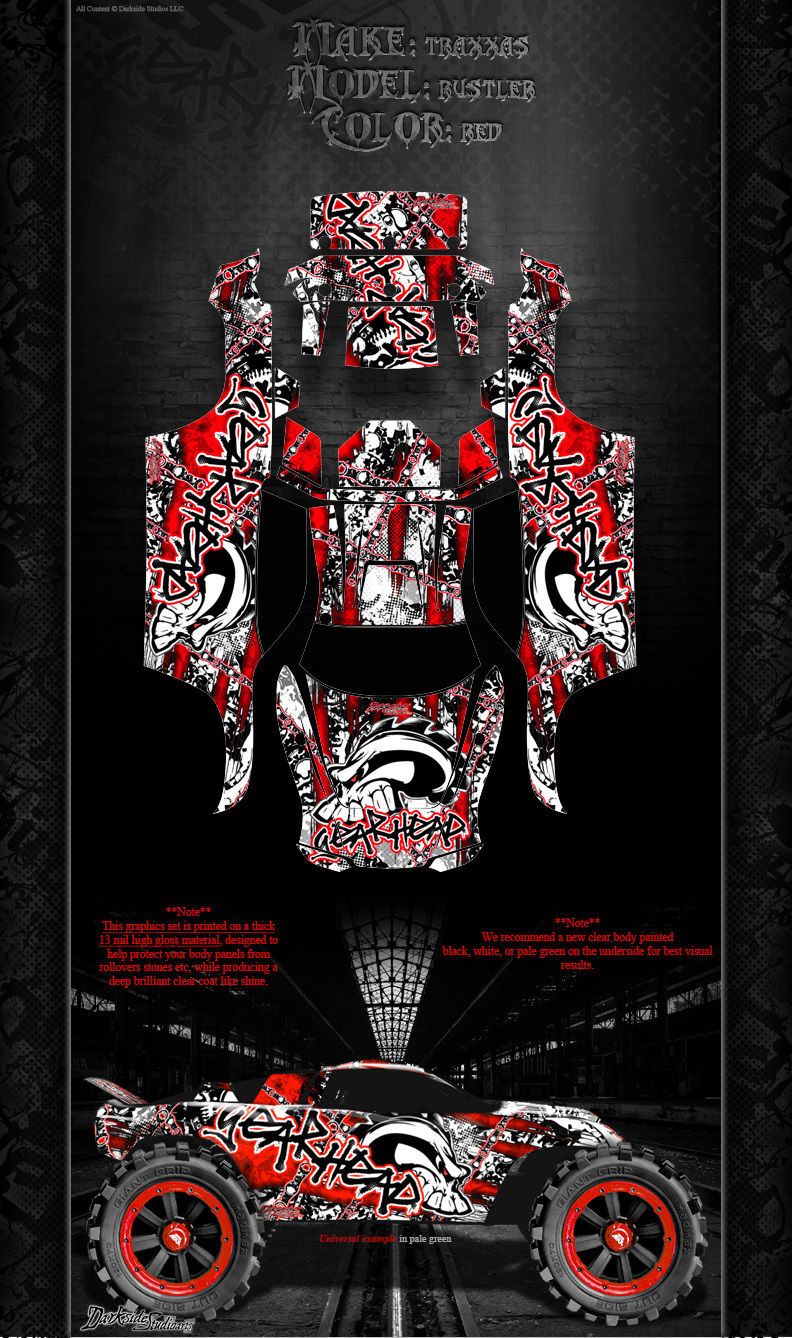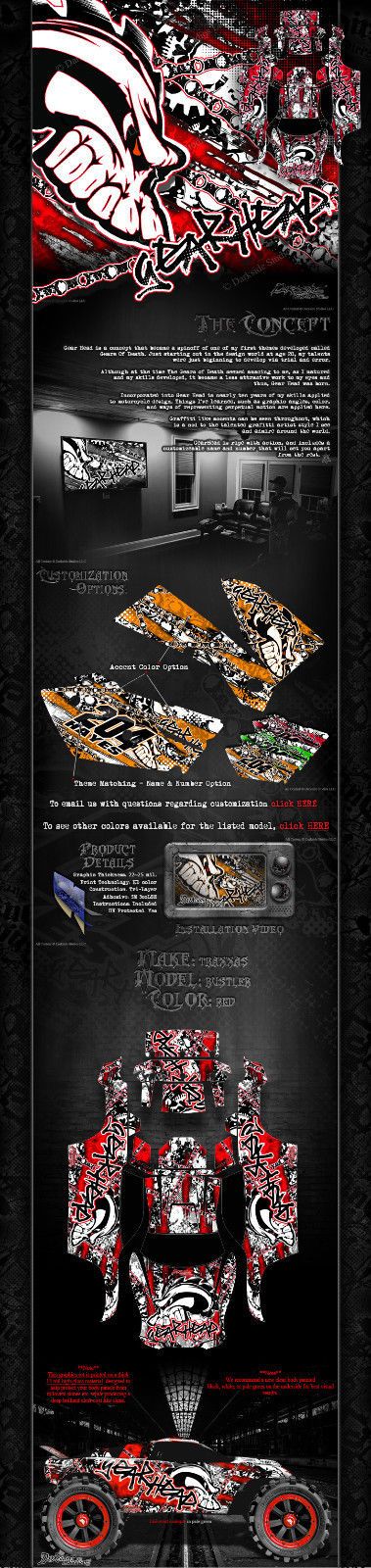 'Gear Head' Graphics Wrap Skin Fits Traxxas Rustler Lexan Body Parts Red Edition