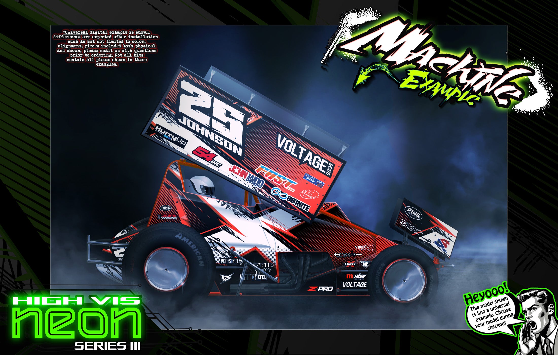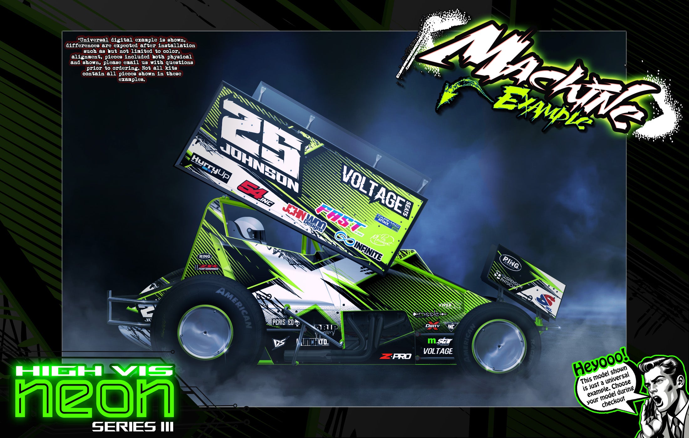 'Neon Series III' High Vis Neon Customizable Graphics Wrap Kit For Hack Fab Sprint Bolt On Lexan Body For Losi Mini-B