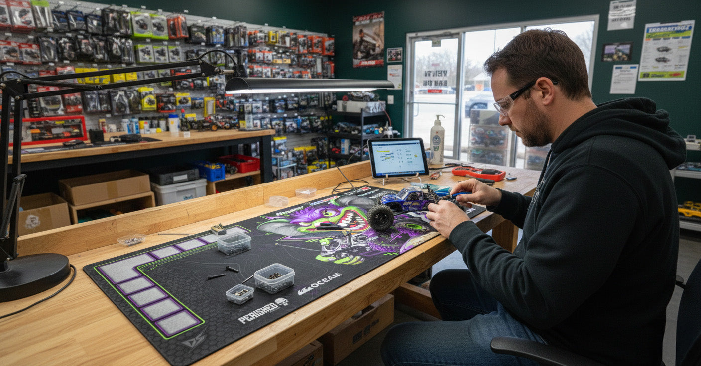 ⚠️ Important Safety Note: These RC pit mats are not suitable for soldering, or for placing any hot tools, irons, or heated items on their surface. Heat exposure may cause permanent damage or fire risk to the material and printed finish.