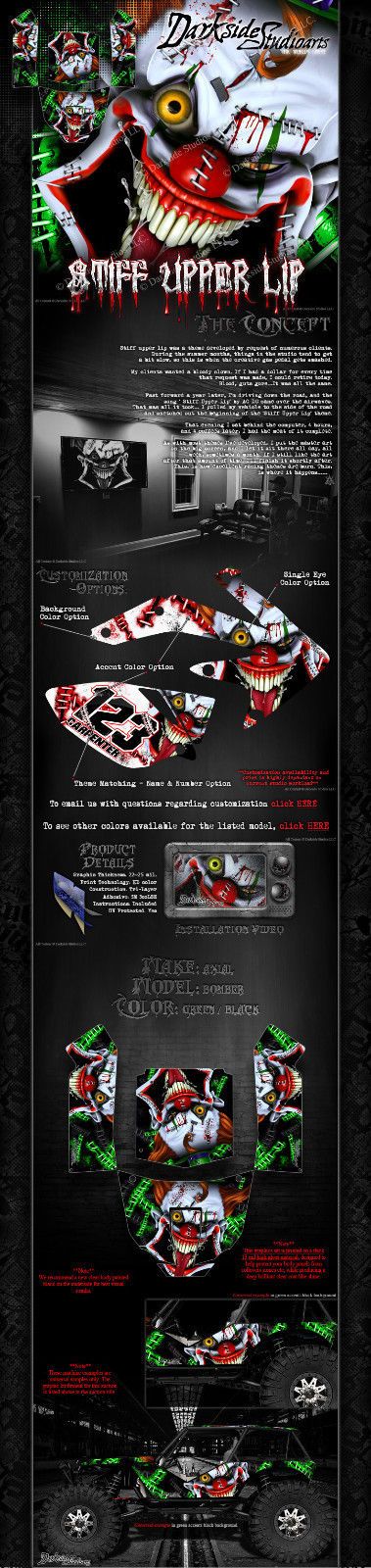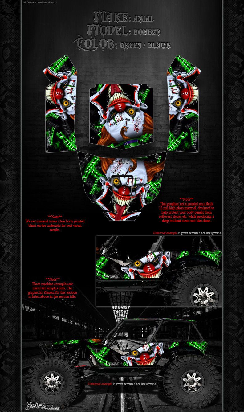 'Stiff Upper Lip' Clown Themed Hop Up Body Panel Graphics Kit Fits Axial Rr10 Bomber Body # Ax90053