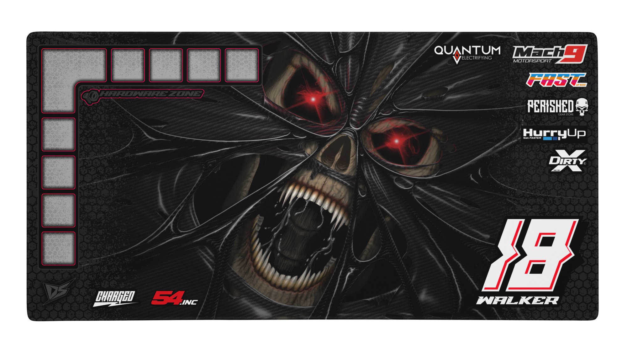 'The Demons Within' Premium RC Pit / Work Mat – Customizable, Rollable, Rubber non-slip base, Polyester Top, Stitched Edges