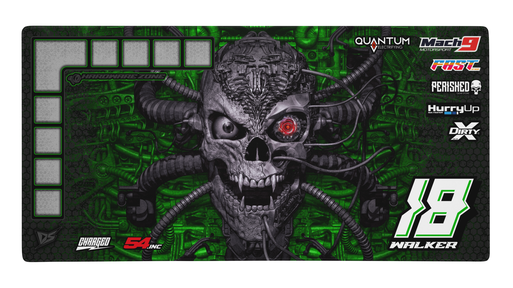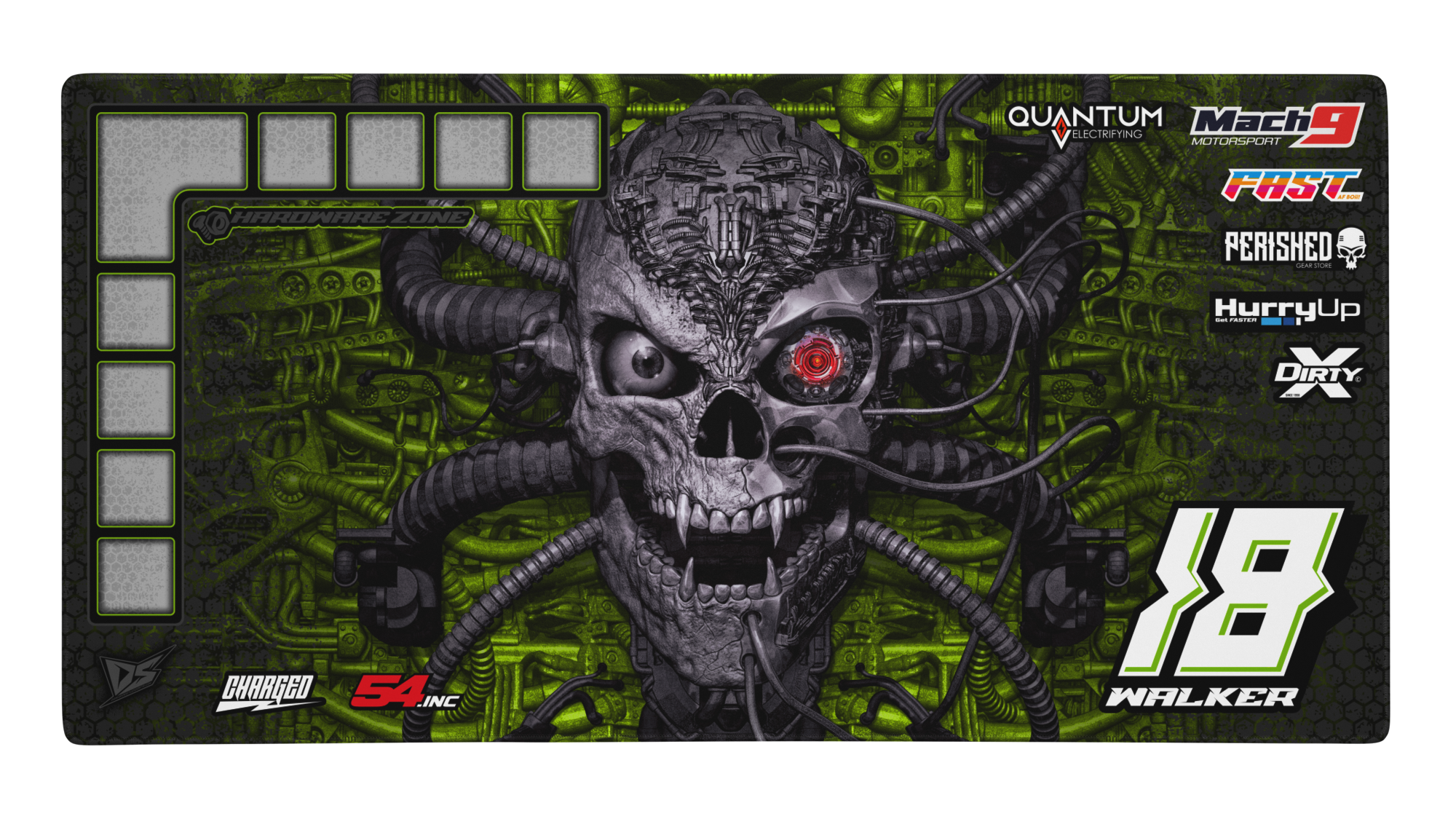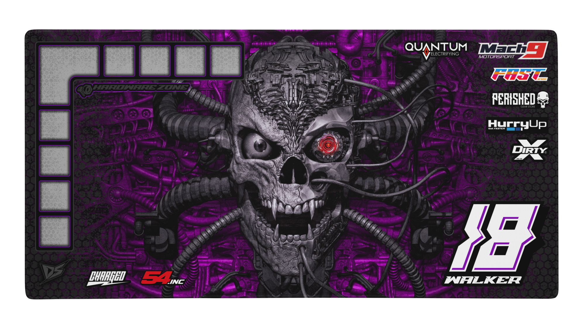 'Machinehead' Premium RC Pit / Work Mat – Customizable, Rollable, Rubber non-slip base, Polyester Top, Stitched Edges