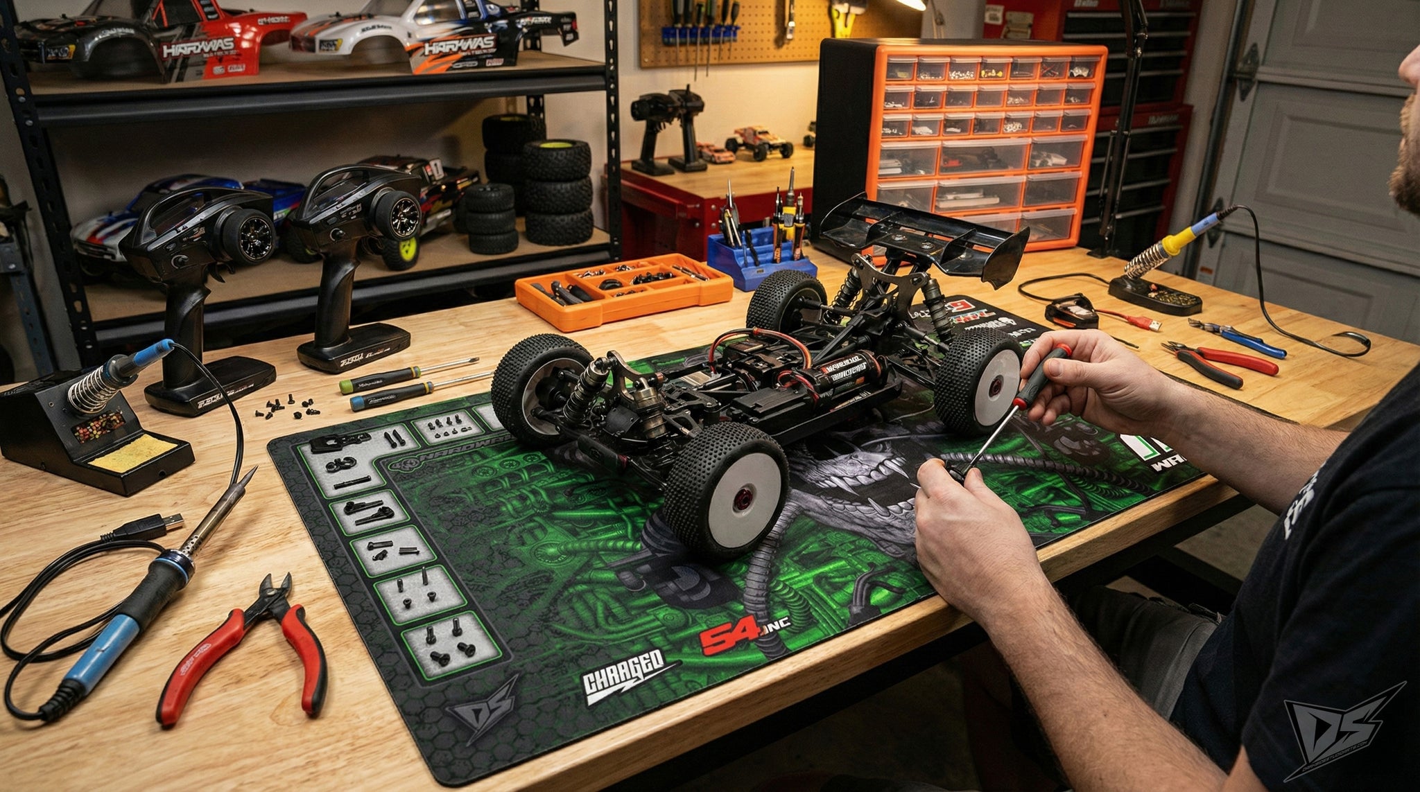 ⚠️ Important Safety Note: These RC pit mats are not suitable for soldering, or for placing any hot tools, irons, or heated items on their surface. Heat exposure may cause permanent damage or fire risk to the material and printed finish.