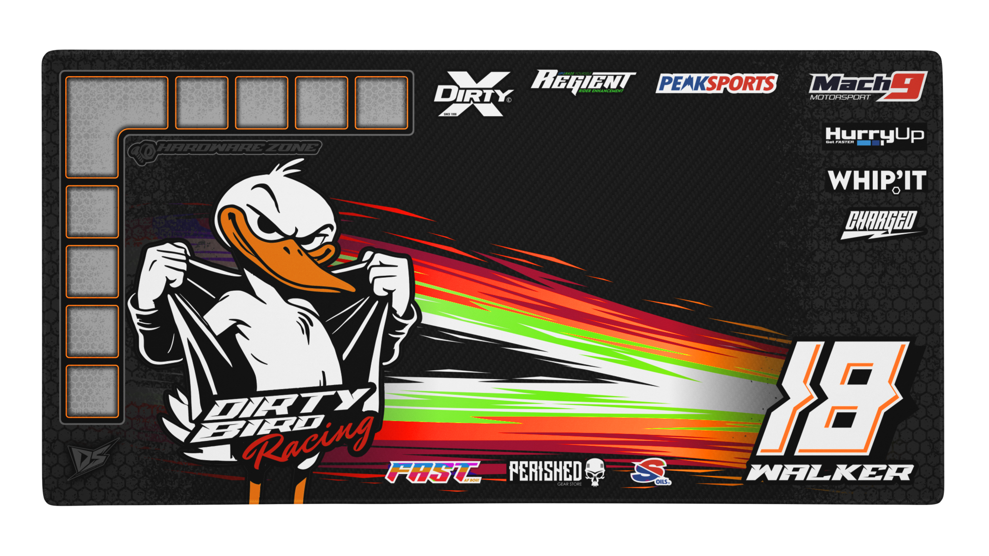 'Dirty Bird' Premium RC Pit / Work Mat – Customizable, Rollable, Rubber non-slip base, Polyester Top, Stitched Edges
