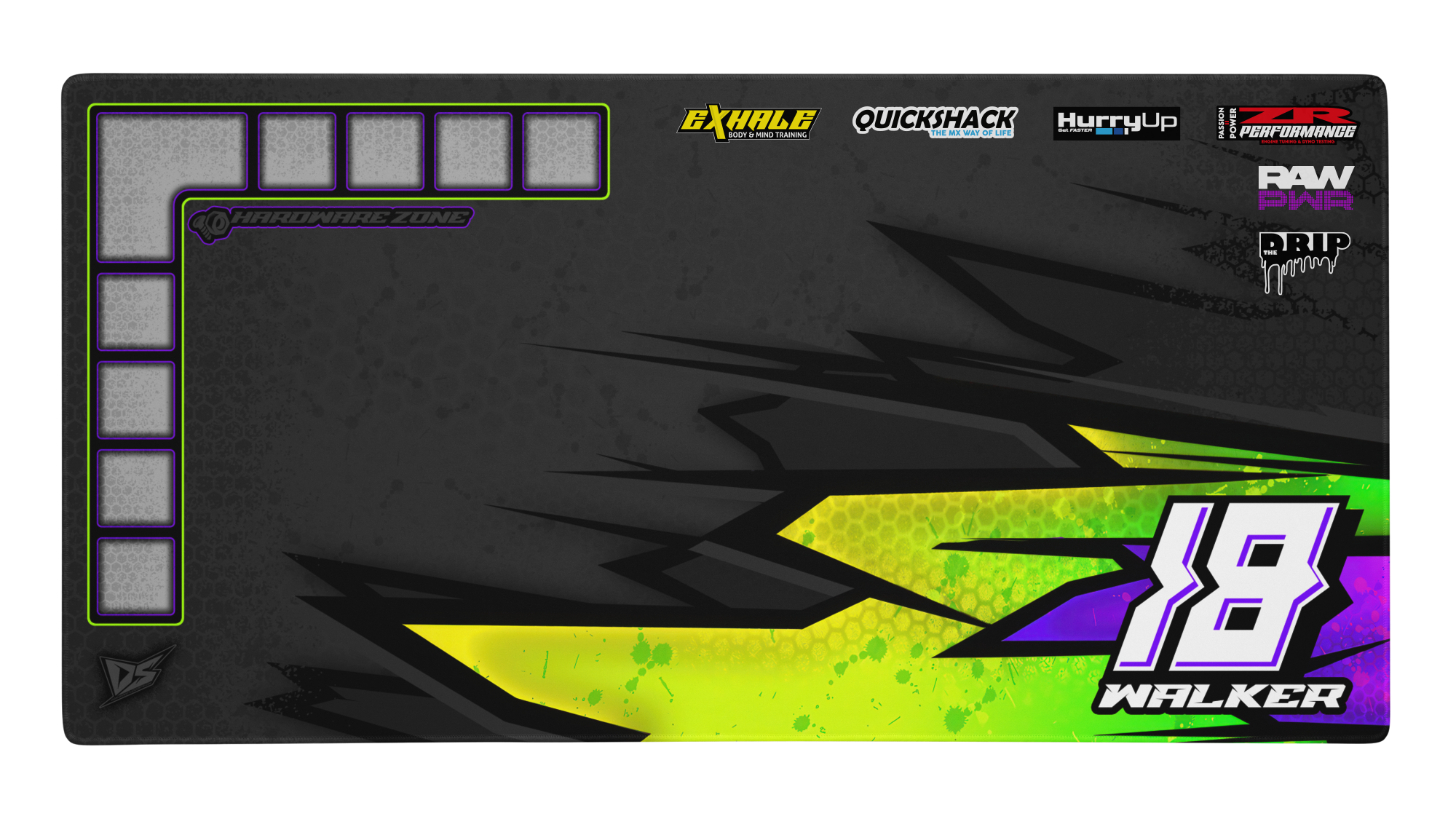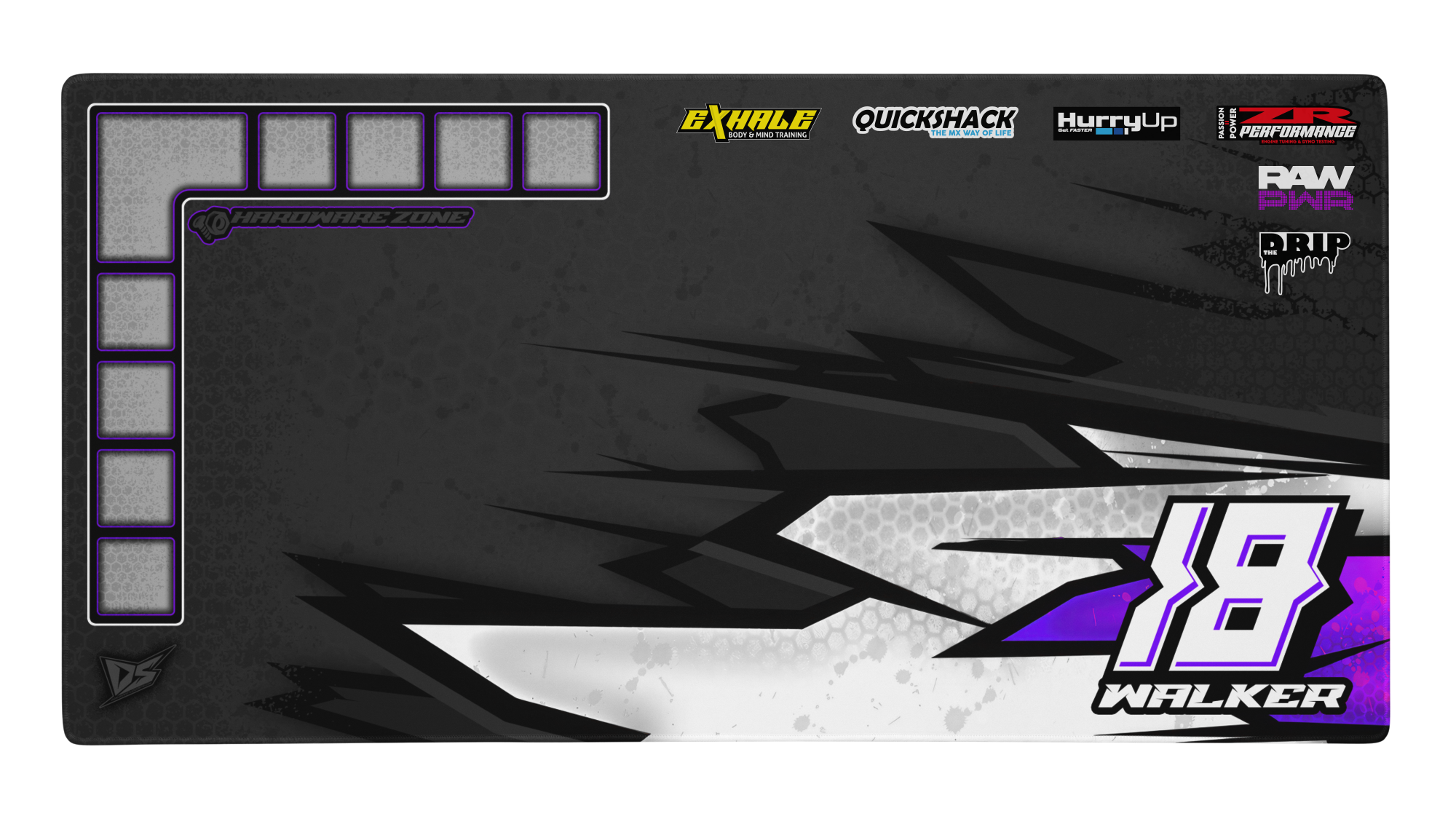 'Hyper' Premium RC Pit / Work Mat – Customizable, Rollable, Rubber non-slip base, Polyester Top, Stitched Edges