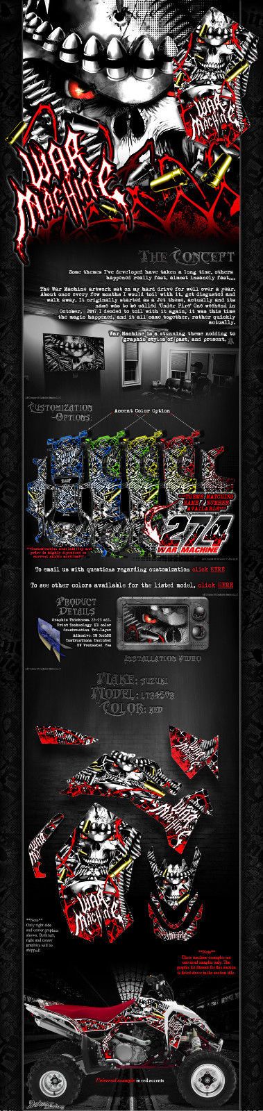 Kit graphique pour Suzuki LTR450 LTR450R, kit de décalcomanies « War Machine », compatible avec les pièces d'origine, rouge