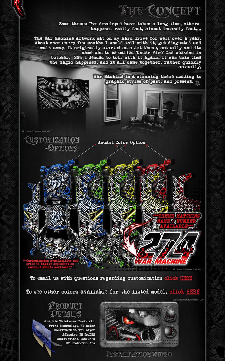 Nos produits sont imprimés sur un matériau extrêmement agressif à haute adhérence de 20 à 23 mil d'épaisseur extrême, spécialement formulé pour l'industrie des sports motorisés, le tout fièrement fabriqué aux États-Unis.