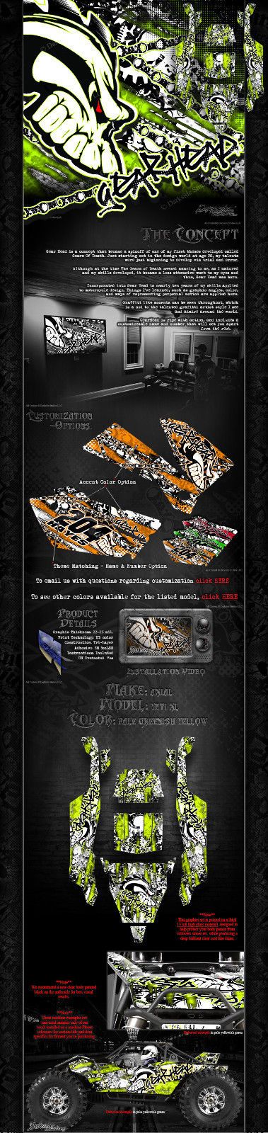 Kit de décalcomanies « Gear Head » pour carrosserie Axial Yeti Monster Buggy 1/8 # Ax31039