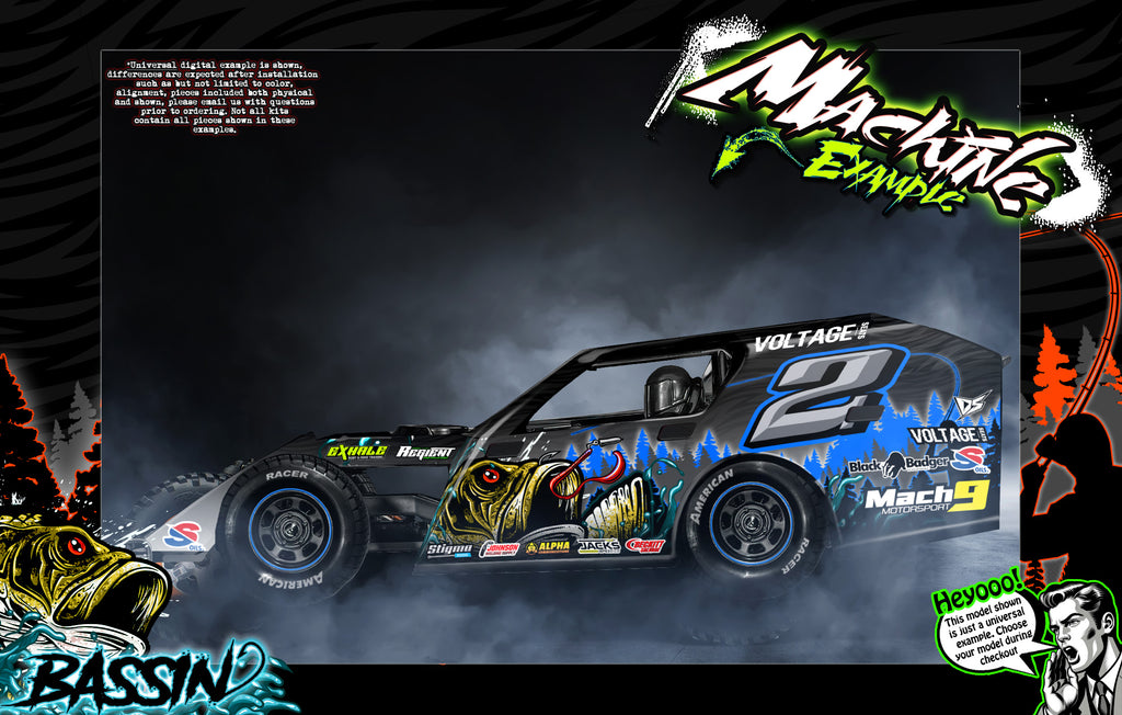 'Bassin' Customizable Wrap Skin Graphics Fits Traxxas Slash Mudboss Modified & Late Model Dirt Oval - Blue