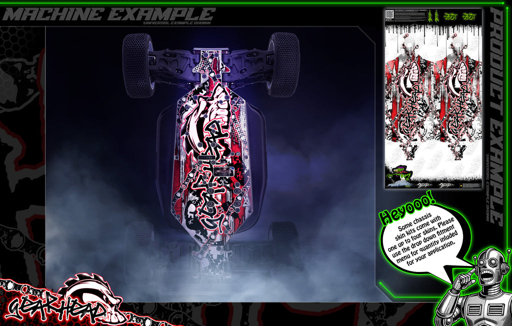 'Gear Head' Aftermarket Chassis Skid Graphic Wrap Skin Protection Kit Fits Traxxas Sledge