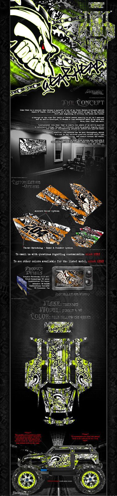 'Gear Head' Graphics Skin Decal Kit Fits Traxxas Summit 1/10 Body Parts