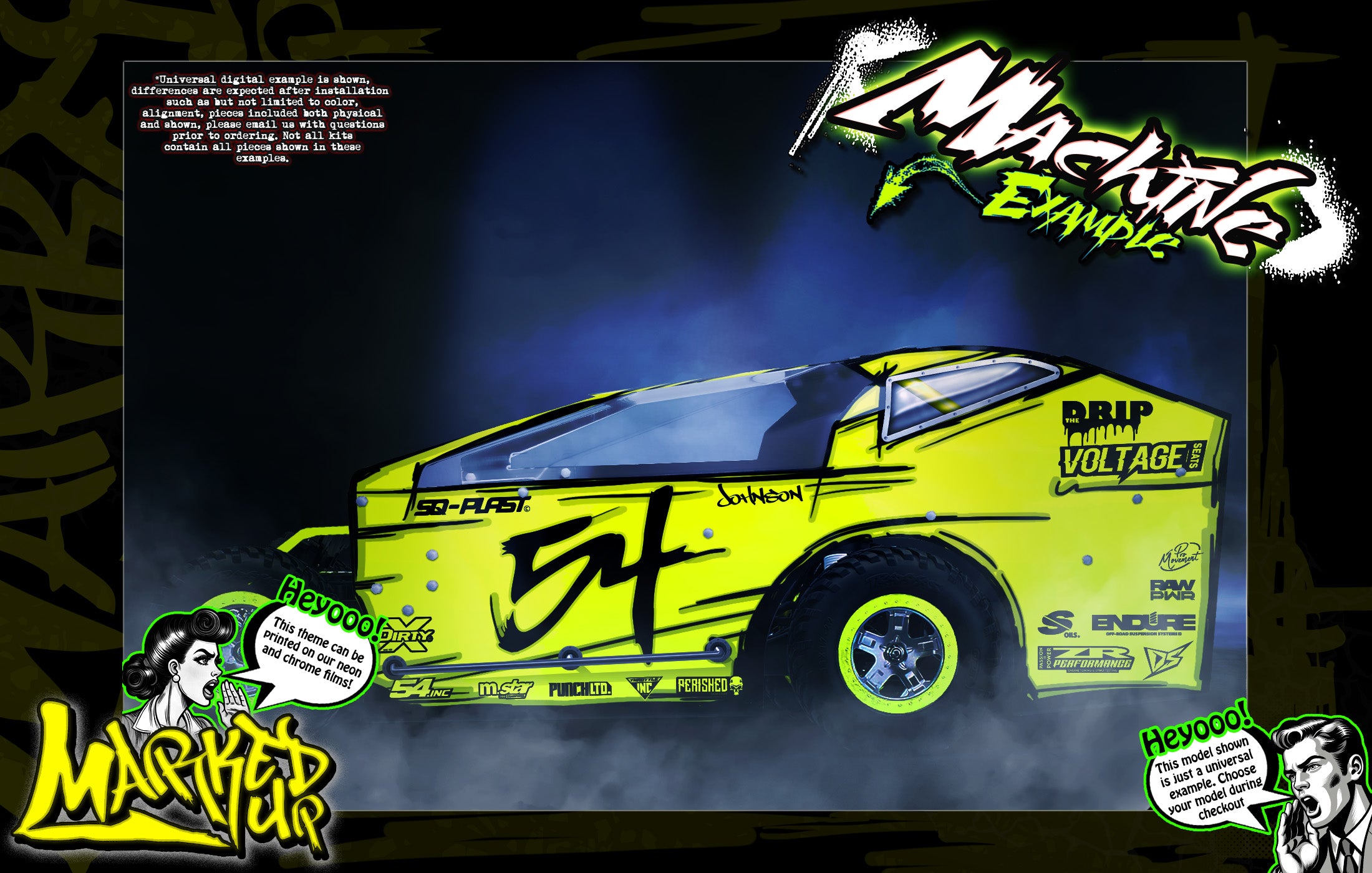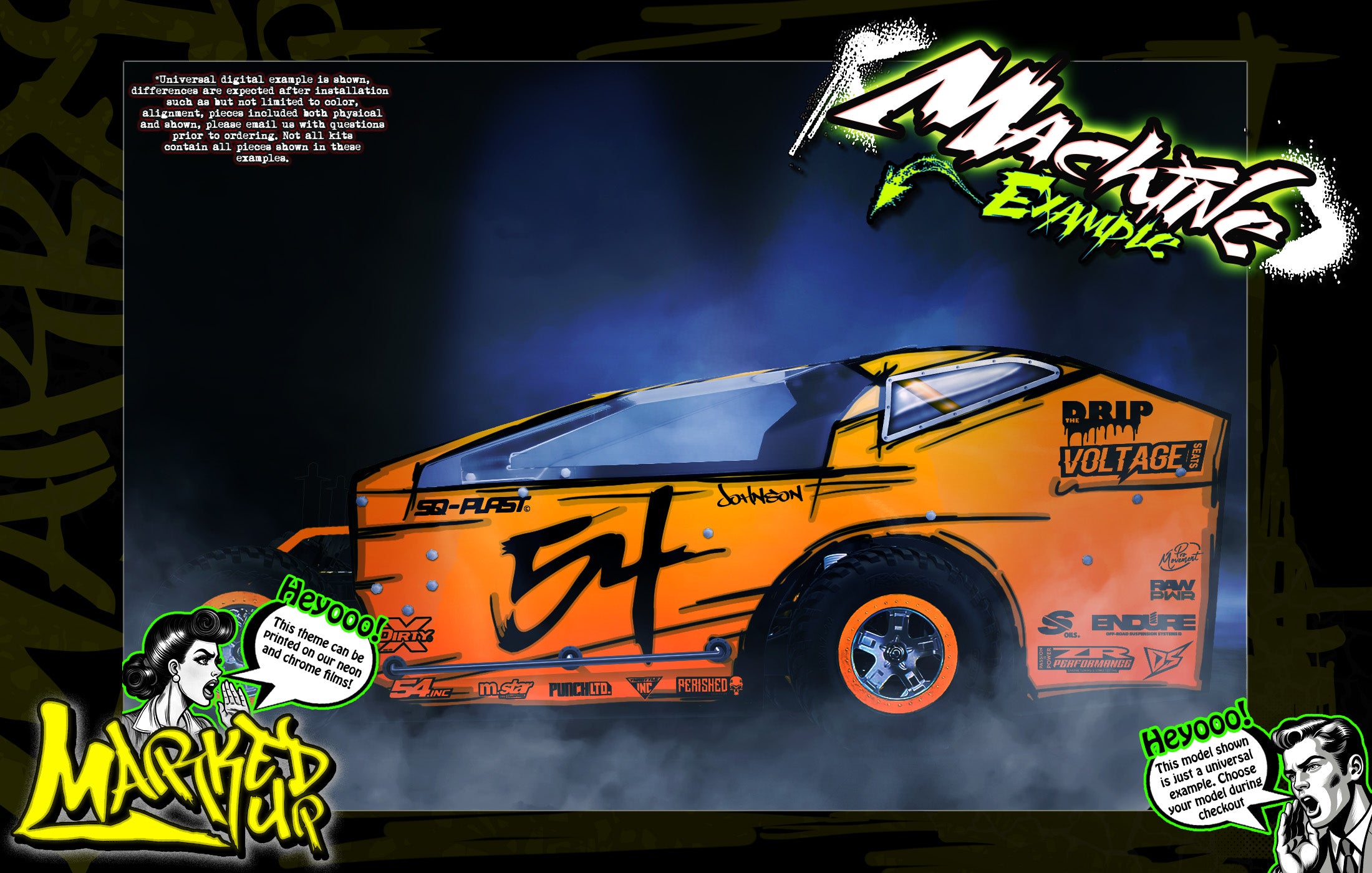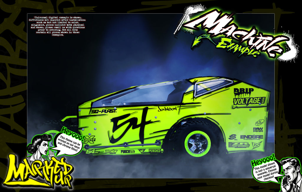 'Marked Up' High Vis Neon Customizable Decal Skin Kit For Salvas Mudboss / SE2 Sprint Traxxas Slash Dirt Oval Short Course Racing