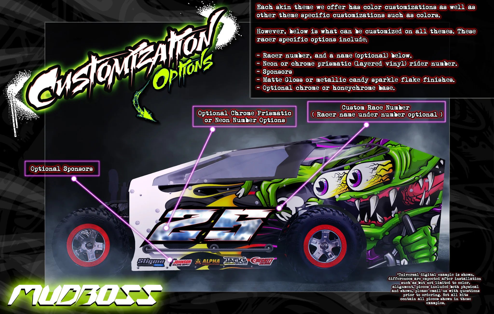 'Neon Series I' High Vis Neon Customizable Decal Skin Kit Fits GT Bodies Series Bandit, Mini-B, Mudboss, Late Model, Hackfab EDM