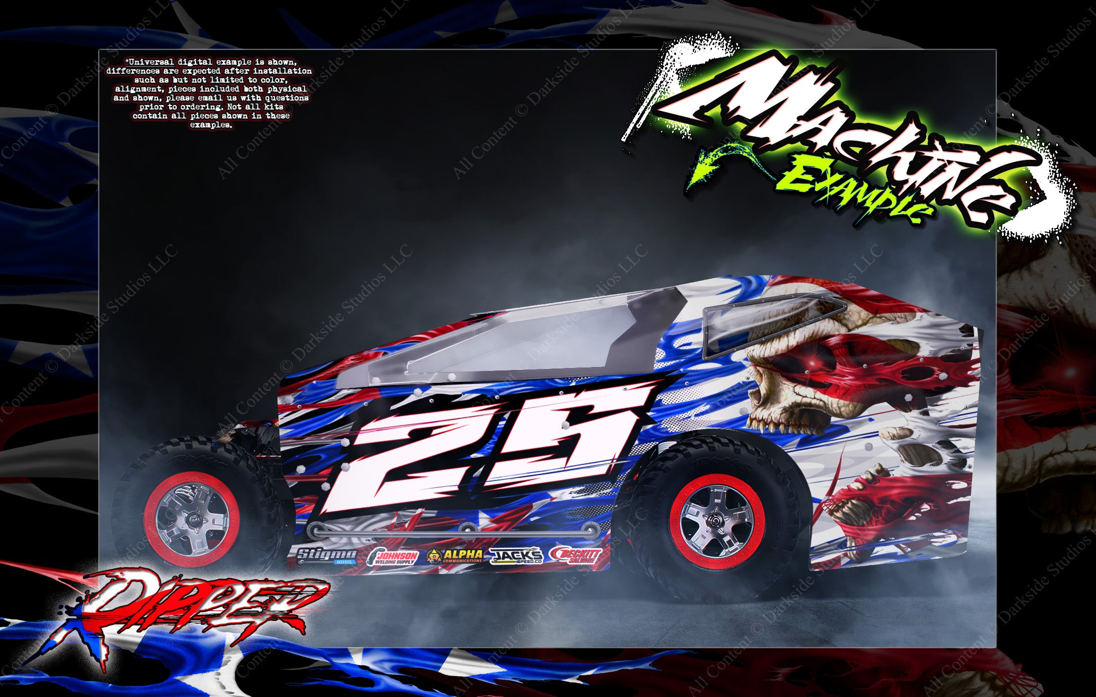'Ripper' Customizable Decal Skin Kit Fits Salvas Mudboss / SE2 Sprint Lexan Body For Traxxas Slash Dirt Oval Short Course Racing