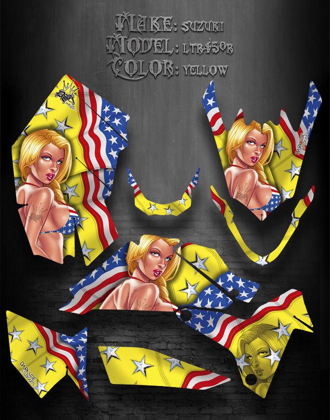 Graphics Kit For Suzuki Ltr450R 450R Atv "Patriotic Seduction" Yellow Model