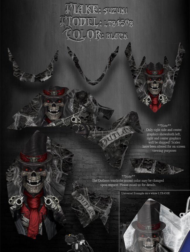 Graphics Kit For Suzuki Ltr450R Quadracer Kit "The Outlaw" Designed For Black Plastics