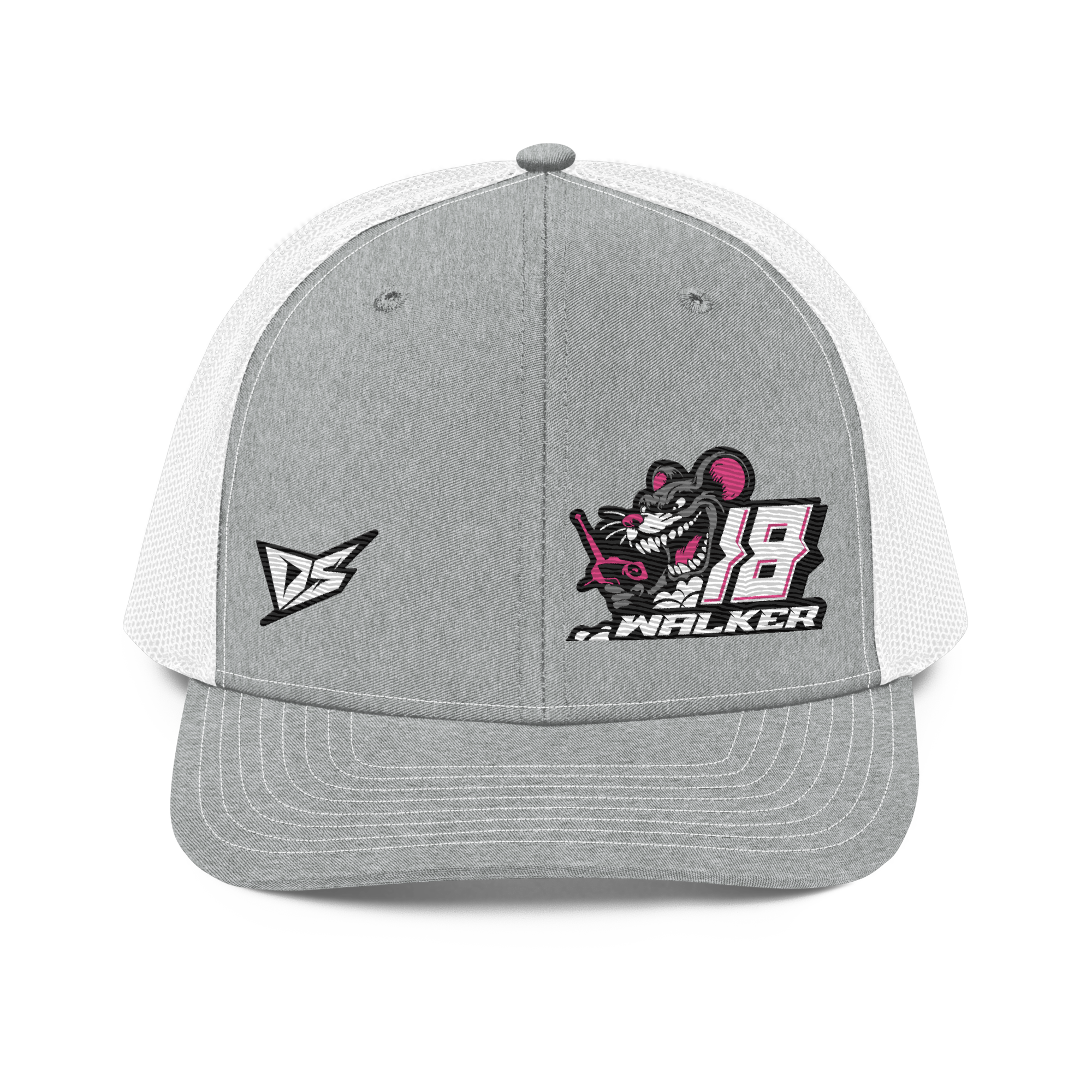 Product being sold: Semi-Custom Embroidered Snap-Back Trucker Hat.