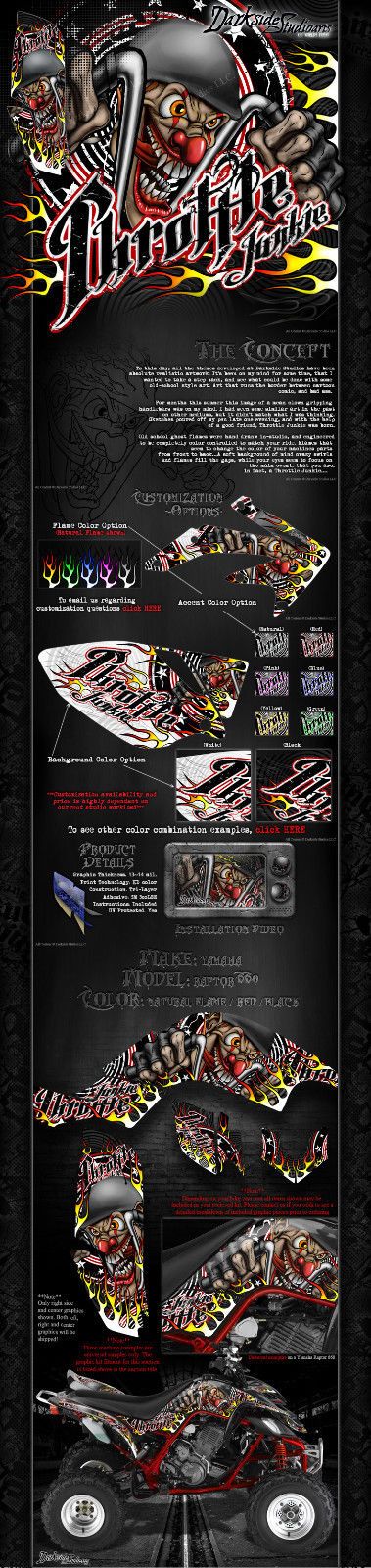 GRAPHICS KIT FOR YAMAHA RAPTOR 660 WRAP "THROTTLE JUNKIE" FOR OEM PARTS DECALS